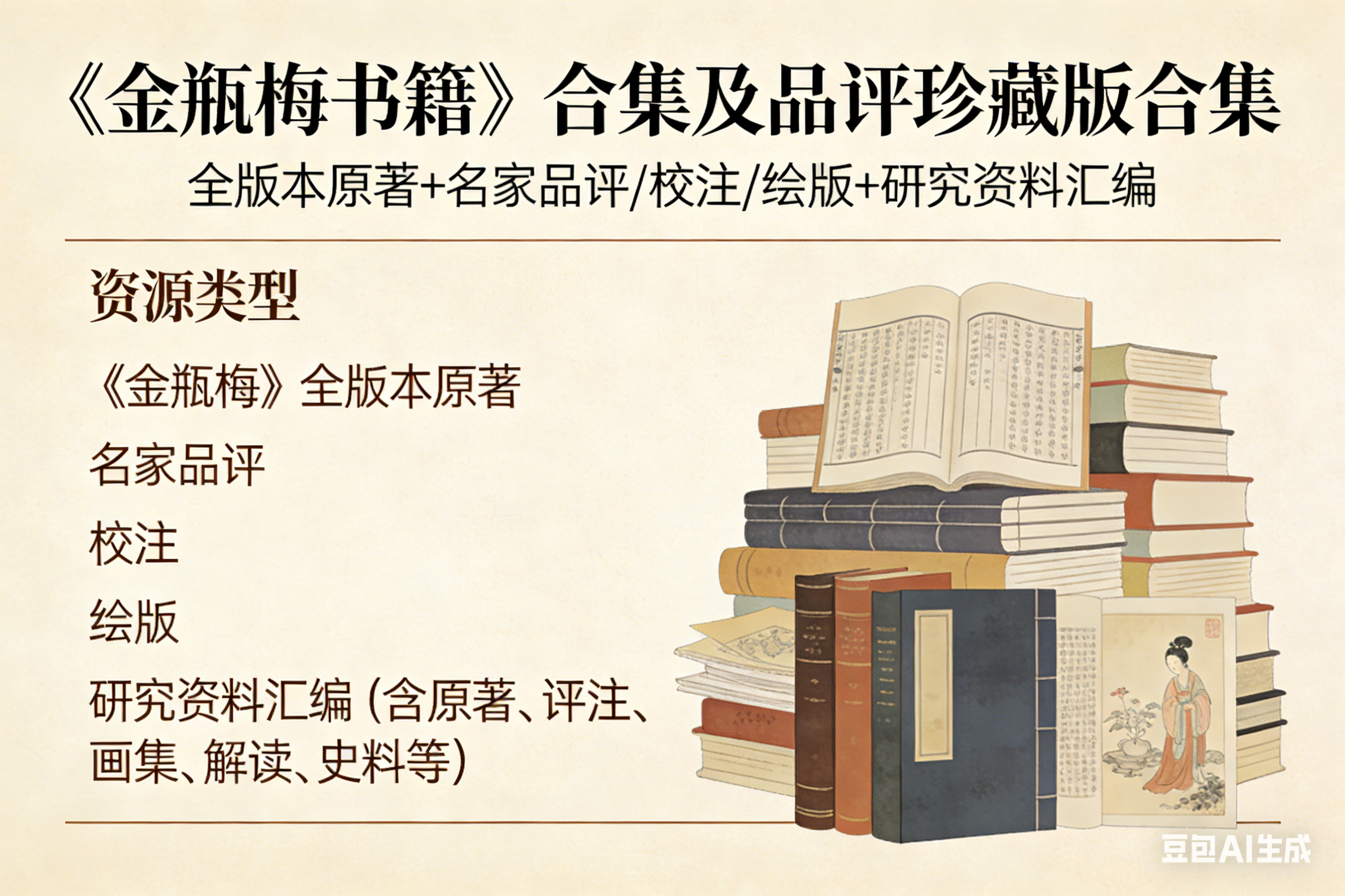 资源类型:《金瓶梅》全版本原著 + 名家品评 / 校注 / 绘版 + 研究资料汇编(含原著、评注、画集、解读、史料等多品类,全维度覆盖)