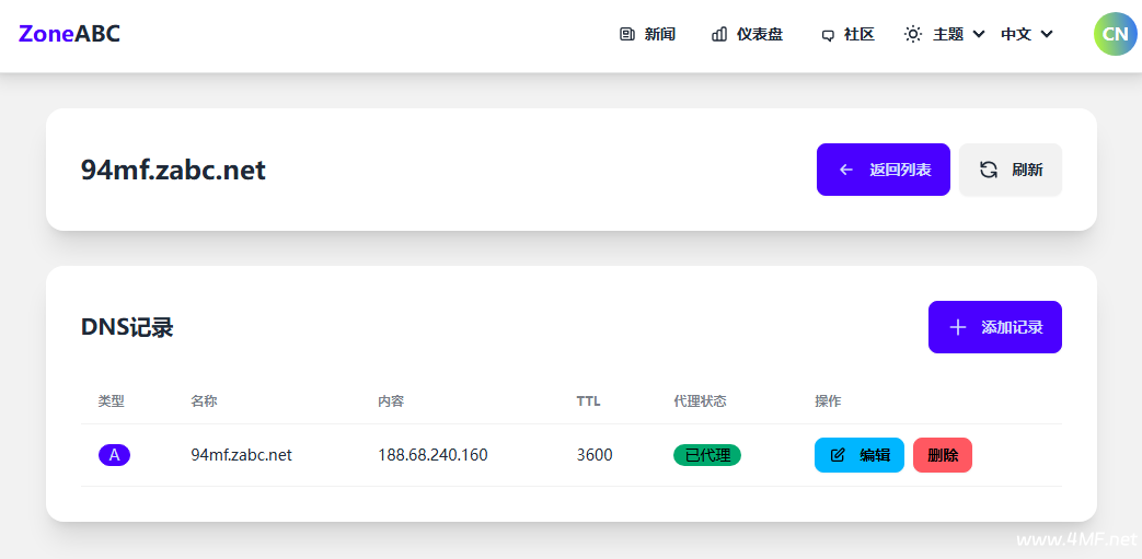 Zabc.net 永久免费二级域名,支持A、AAAA、CNAME、MX、TXT和NS