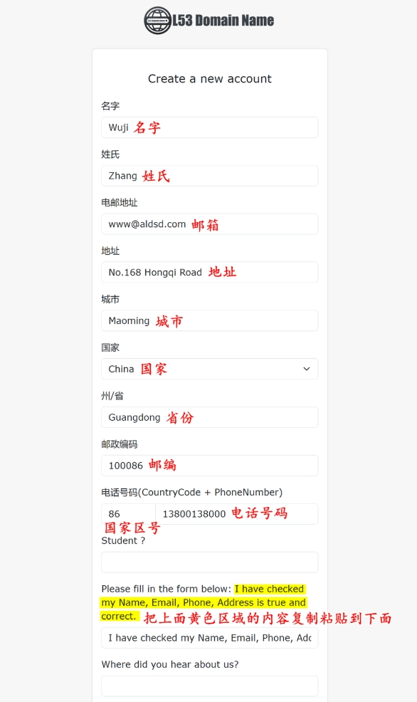 - 填写你的名字、姓氏、邮箱、地址、国家、城市、省份、电话等基本信息。