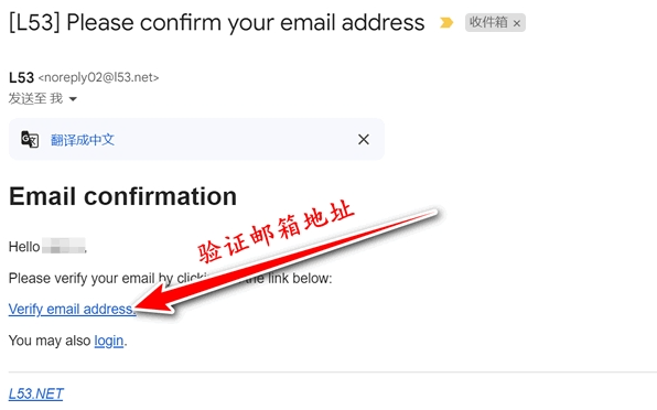 打开你的邮箱,点击L53发过来的验证邮件中的链接验证你的邮箱地址。然后进入控制面板管理域名即可。
